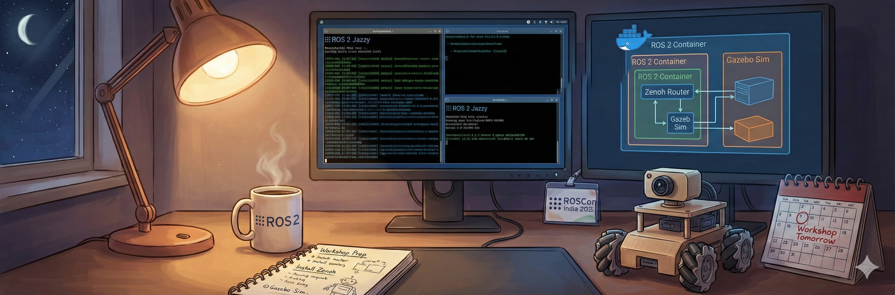 Tomorrow is Workshop 3: Zenoh - The Next-Gen Middleware for ROS 2 at ROSCon India 2025. Tonight, we’re doing a complete dry run of all 8 exercises using the official Zettascale container.