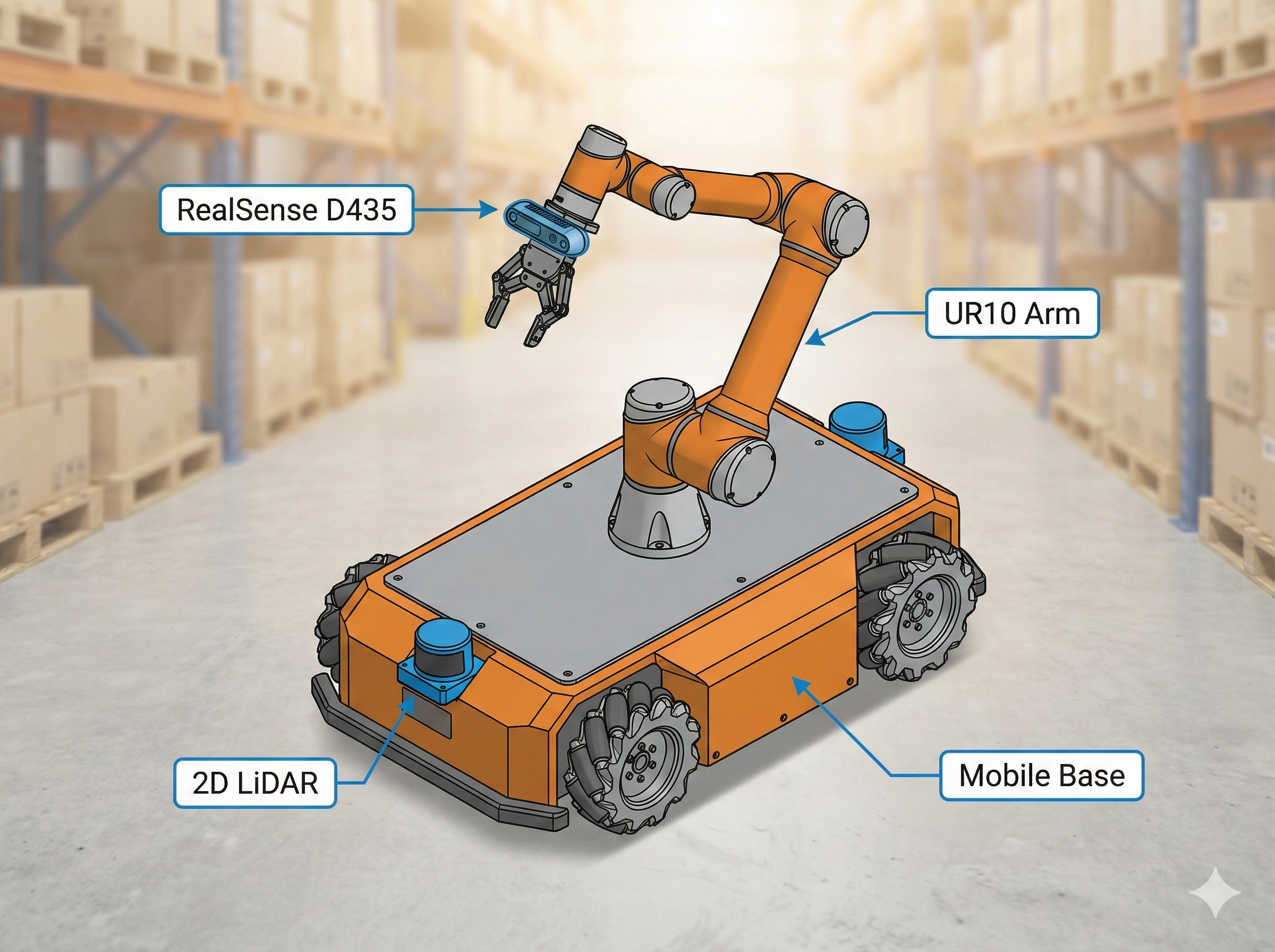 | Robot Platform | Neobotix ROX (industrial robot with UR10 arm) |