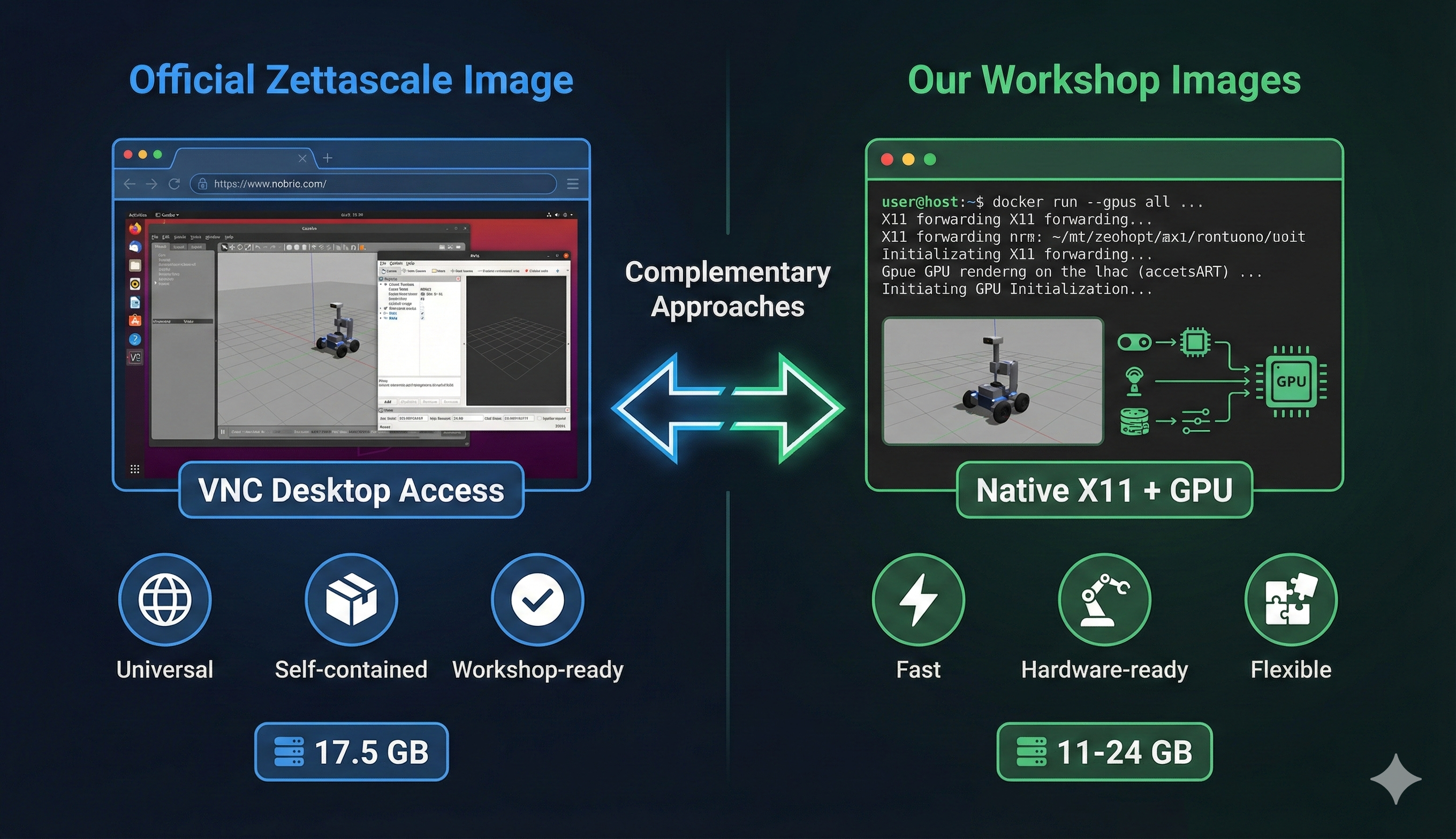 We’ve been preparing our own Docker images for Workshop 3, building containers with rmw_zenoh, CycloneDDS bridges, and camera integrations. But now we have the official image from Zettascale themselves.