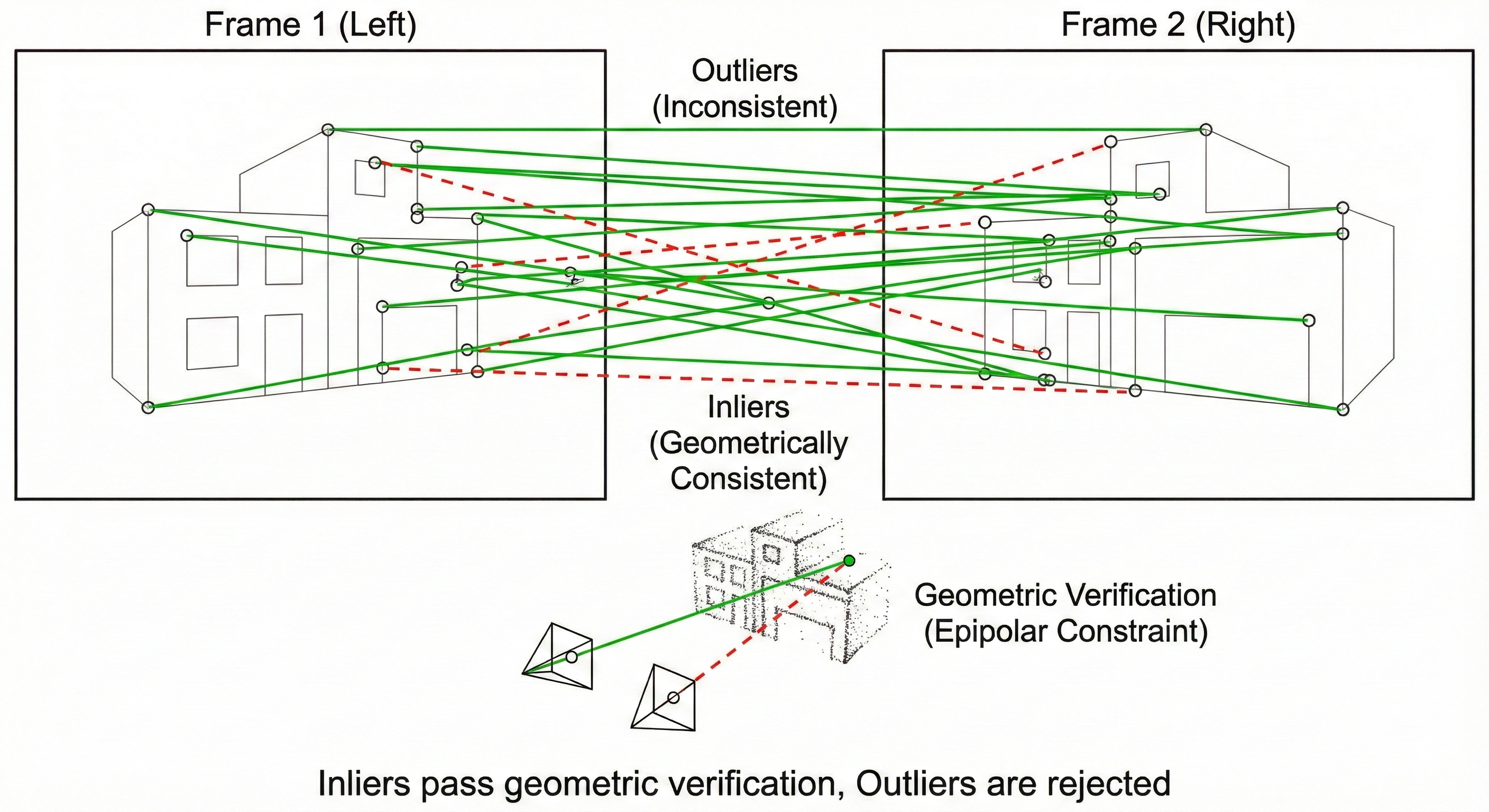Why it happens: - Feature descriptors encode pixel values - Lighting changes alter pixel values - Same physical feature → different descriptor - Matching confidence drops