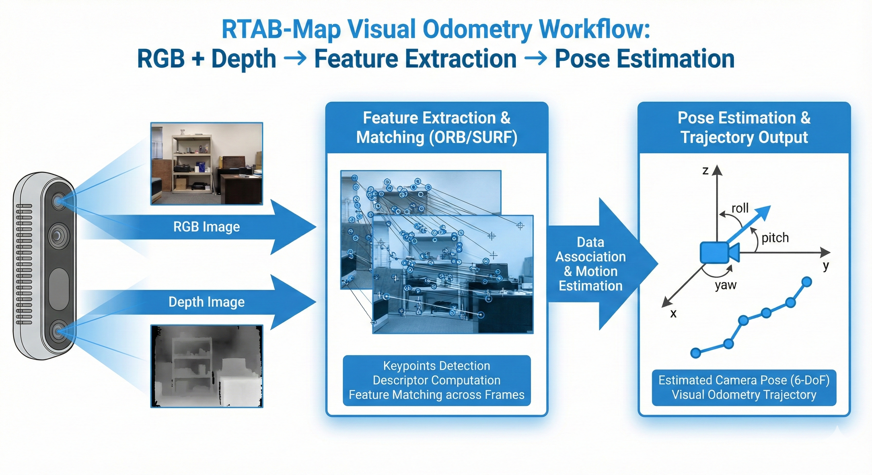 RTAB-Map includes a powerful visual odometry module that works with RGB-D cameras like the D435i.