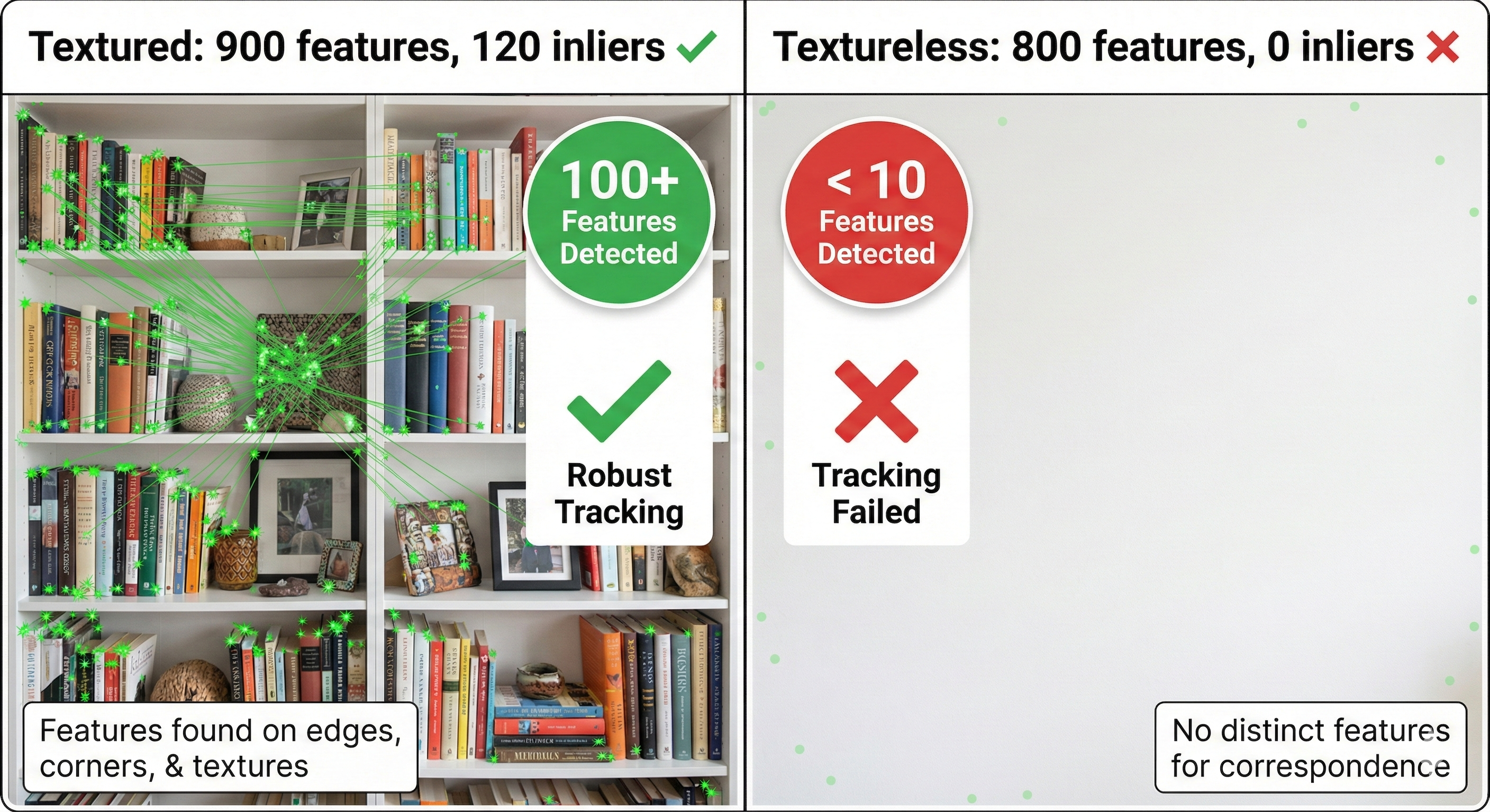 | 9 | Textureless Surfaces | No features = no tracking |