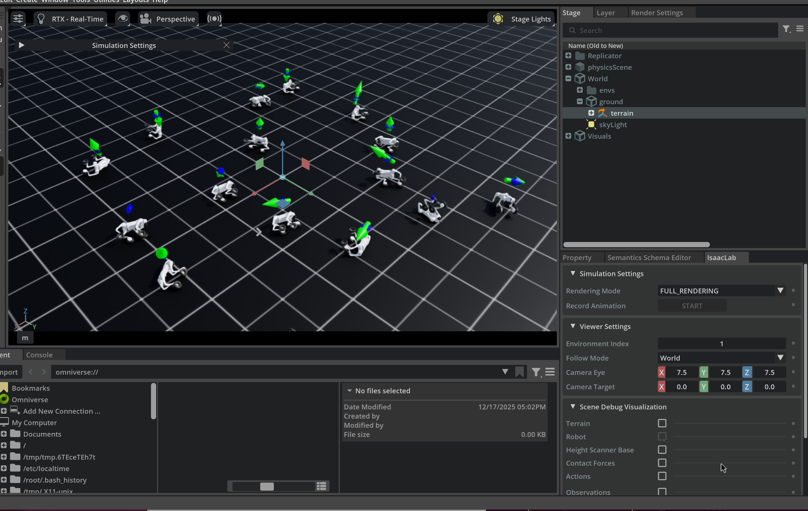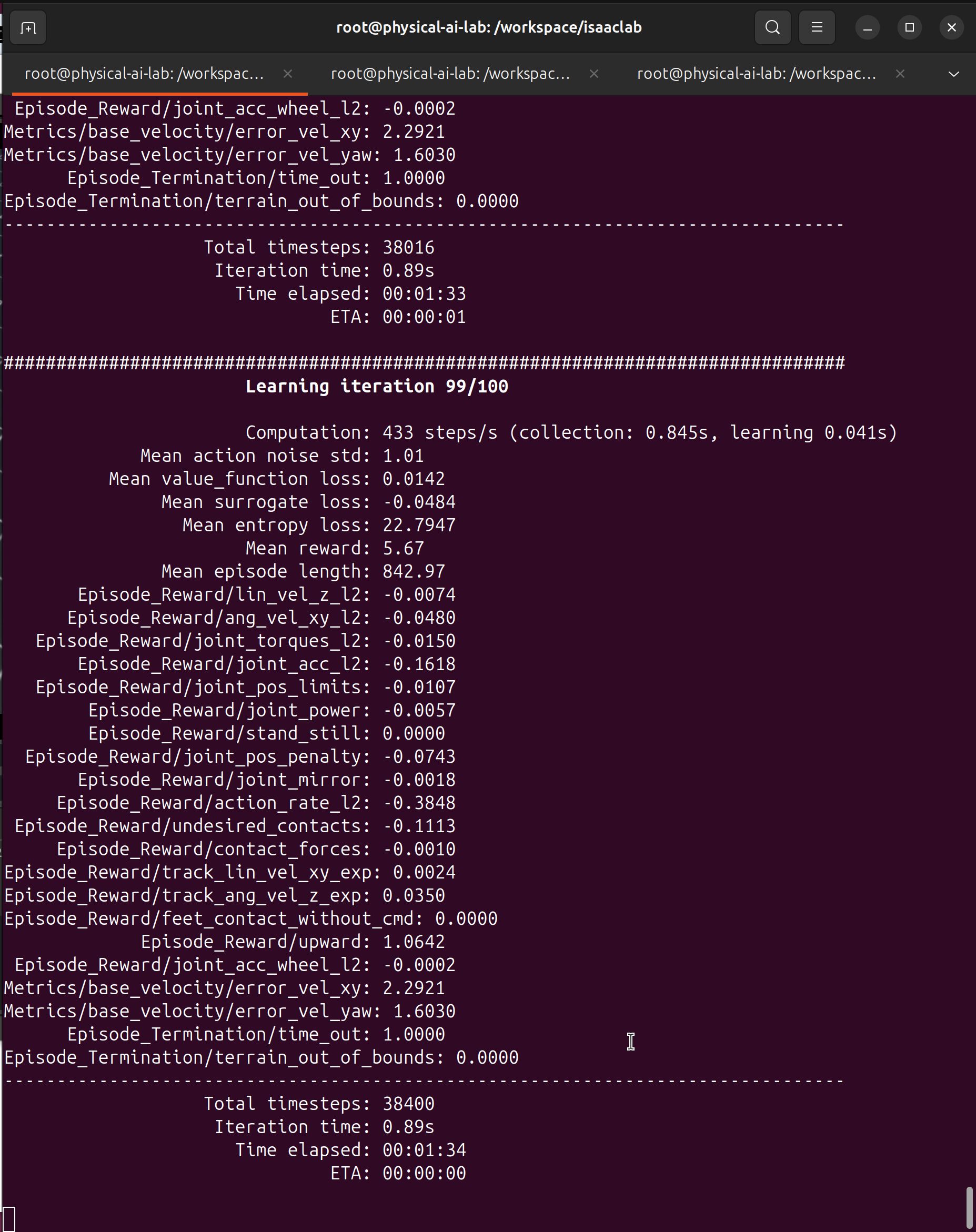 train.pydoesn’t import robot_lab environments. You must userobot_lab/scripts/.../train.py.Terminal Fix - We added