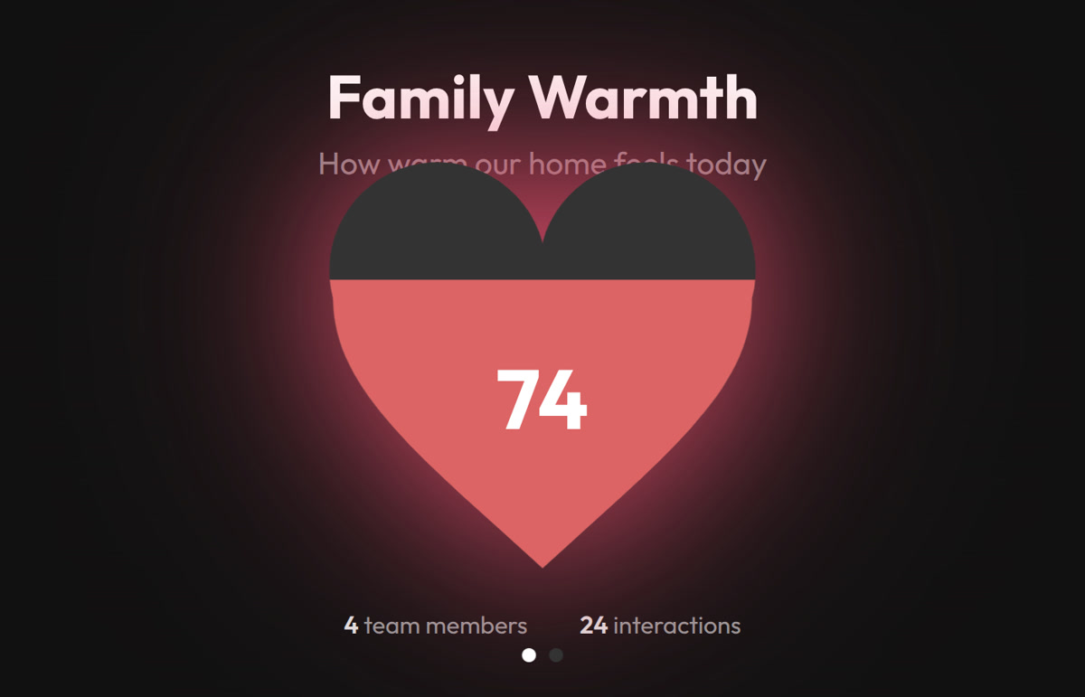 - Day at a Glance β Conversations count, moments captured, and a warmth label with hearts instead of percentages