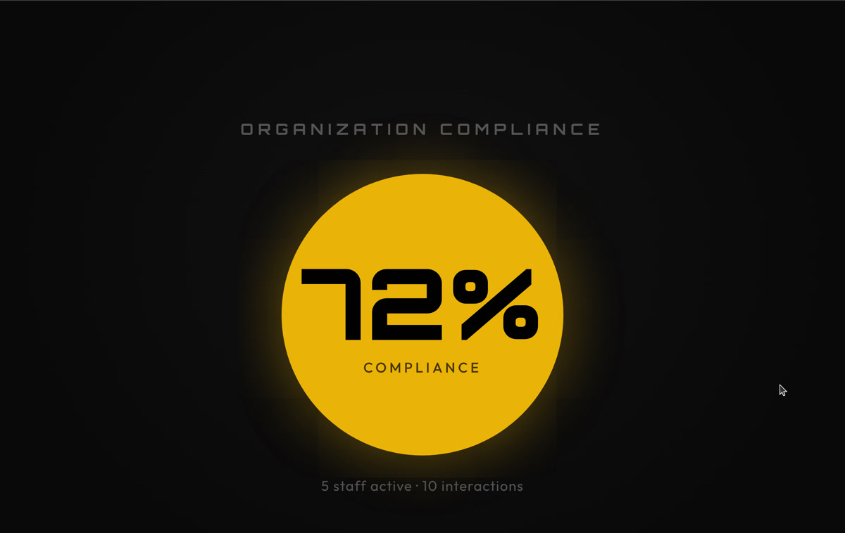 - Aggregate β Giant compliance ring or heart gauge, staff count, interaction count. βHow weβre doing together.β